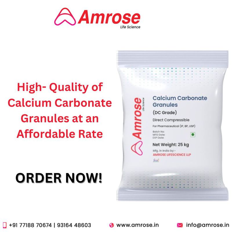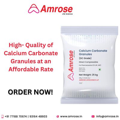 Amrose Lifescience LLP is your reliable partner for high-purity Calcium Carbonate Granules, ideal for calcium-based formulations in Iran. Our granules meet USP/BP/IP standards and are produced in certified Indian facilities. Excellent flow, purity, and cost-effectiveness. Trusted across the Middle East. Send inquiries now!